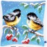kruissteekkussen koolmeesjes in wintersfeer