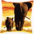 kruissteekkussen olifant met jong bij avondzon